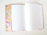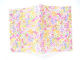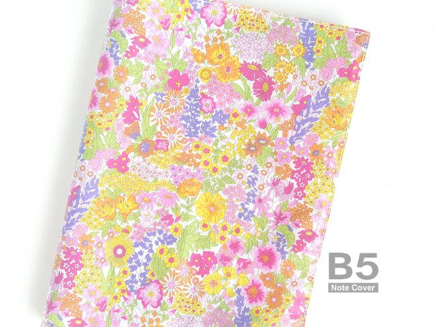 リバティの人気生地、マーガレットアニー Margaret Annie(イエローピンク)のラミネート生地(つや無)でB5サイズ(大学ノート)のノートカバーを作りました。