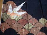 繊細で美しく、刺繍の鳥と青海波模様が奏で長れる、素敵なアンティーク着物をほどいて、画像デザインのフォーマルワンピースをお作りいたします。