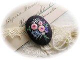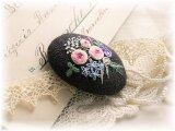 シックな濃いパープルリネンにバラの花束の刺繍ブローチ