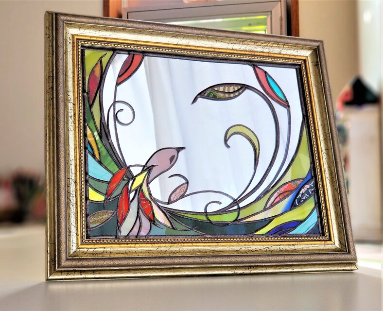 ・アンティーク仕上げのゴールド色の額装にグラスアートを施しています。