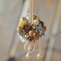 ヒノキやカザリナ(カシュリナ)などの小さな木の実に、金銀のラメやダイヤ風ストーンを加えてキラキラに仕上げました。
