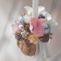 ヒノキやカザリナ(カシュリナ)などの小さな木の実に、ピンクのお花を加えて甘めのイメージに仕上げました。