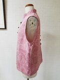 前後中央に別布で三角パッチ、くるみボタン、ループを付けました。