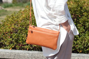 【長財布が入る】サコッシュ 姫路レザー キャメル 牛革 ショルダーバッグ 薄型 ak-53nns