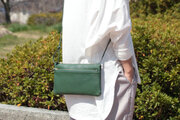 【長財布が入る】サコッシュ 姫路レザー グリーン 牛革 ショルダーバッグ 薄型 ak-53nns