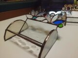 乳白色とクリアーガラスをベースにアンティーク風のお花をデザインしました。