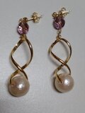 コットンパールと、アメジストのチェコビーズをツイストバチカンを使い、おしゃれにアレンジしました。