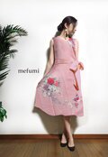 繊細で美しく、上品な華々が奏で長れる、素敵なアンティーク着物をほどいて、画像デザインのフォーマルワンピースをお作りいたします。