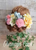 結婚式の前撮り用にお願いしました。 無事に前撮りが完了したので、感想書かせて頂きます。 自分では花の色合いや種類を決めることができず、色打掛の写真を元に作って頂きました。 完成品は依頼した通り、上品で存在感のある綺麗な花飾りでした。 実際に色打掛を着てヘアメイクさんに付けてもらったら、着物とピッタリ! 大大大満足です! お願いして本当に良かったです。 ありがとうございました。