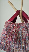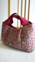 京都の糸屋「アヴリル」オリジナルの糸と数種類の糸を混ぜて手織りした布を使ったオリジナルデザインのバッグです。