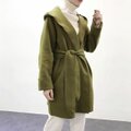 en-en・両面ウール混紡・1枚仕立てフードコート・オリーブ・イエローグリーン