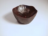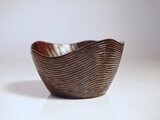 器のまわりに線彫で年縞模様を彫ったお皿。