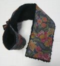 合わせやすい黒系にPOPな花柄の大島紬に、黒モコモコボアを張った、とても暖かいマフラーです。