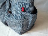 トートバッグ型ですが、タックでふっくらさせ、まち幅を広くしてあるので、収納力がありながらも可愛らしい形になっています。