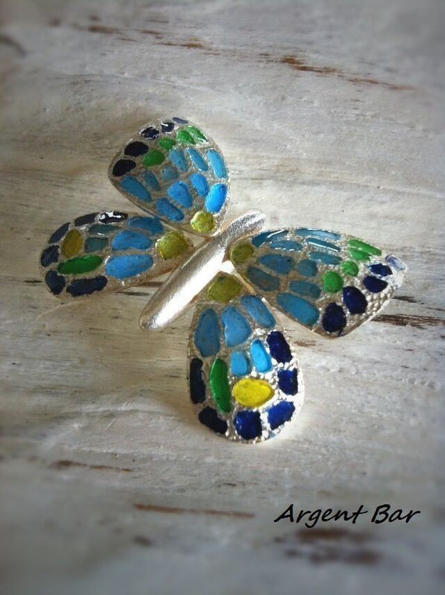 全て手作業で蝶のパーツごとにカットし、特に羽根の部分は、細かい羽根の模様を一つひとつくり抜いて下にもう一枚の地金をロウ付けして、そこに色を入れています。