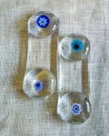 ミルフィオリ(金太郎飴状のお花のガラス)を溶かし込んでいます。