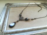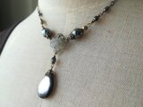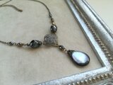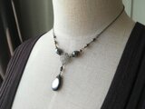 とても美しい輝きの黒蝶貝(マザーオブパール)を透かしコネクターに下げました。
