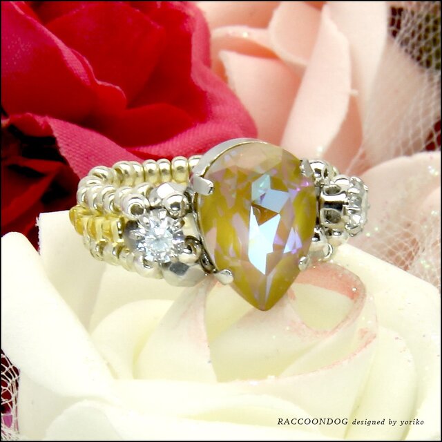 虹の雫・クリスタルオークルディライト【新色スワロフスキー&ジルコニア ビーズリング】《ビーズアクセサリー》