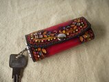タンロウ革に刻印を排列し、拭き染めを施しました。