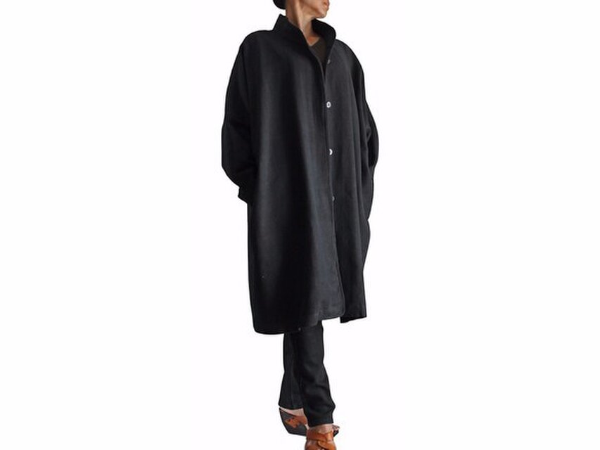 タイ北部チェンマイ郊外のジョムトン村、伝統技術のハンドメイドで織られている手織り製品。かっこいいチャイナカラーのコート。身幅はとてもゆったりと作っていますがシルエットはぶかぶかにはならずにすっきりです。両サイドポケット付き。