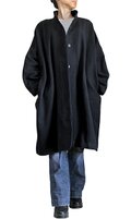 ジョムトン手織り綿ゆったりチャイナカラーコート 黒(JFS-103-01)