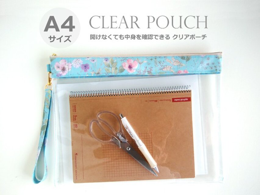 A4の用紙が入るクリアファイルが入るポーチを作りました。
