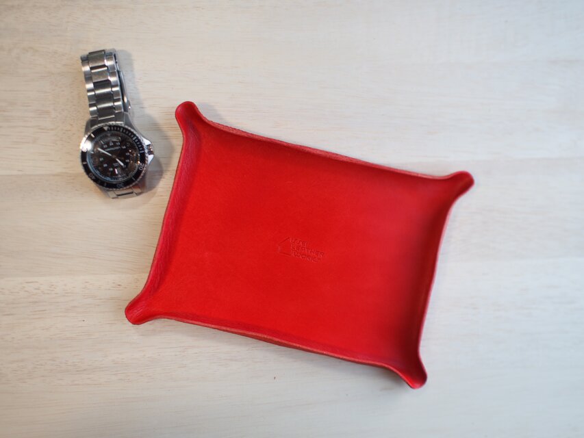 栃木レザーを使用した【レザートレイ(特大)】【カラー:赤】です。