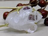 さすがの透明度と煌めき*ミナスジェライス産クラスタークォーツの真鍮アンティーク調ストールピン*安易な接着ではなく複雑な輪郭に合わせて製作した石座に引っかかり無く施された石留め。。湾曲したフレームでストールをふんわりまとめます*硬質真鍮を使い加工硬化により強いバネ性をもたせ全体にシッカリした張りがありピンも曲がりにくく丈夫な作りです*(変色遅延処理あり)