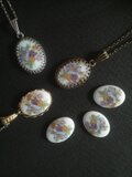 大きなBlueの朝顔と、パープルと黄色の小花達の磁器製カボションです。可憐で美しいですね。