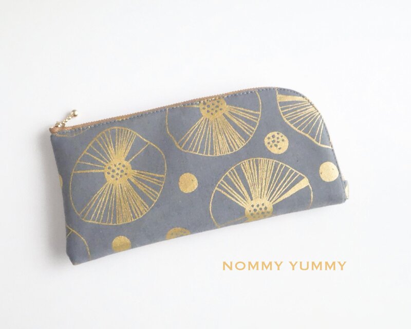 外側はダークグレーをベースに手書きの円形がメタリックゴールドでデザインされた