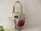 絵画のような絵柄のリネンの生地(STOF)でタック入りのポケットいっぱいのトートを作成しました。