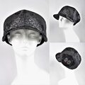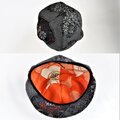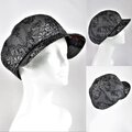 大島紬キャスケット:モノトーン×花模様 着物リメイク ビンテージ着物 送料無料 1810c06