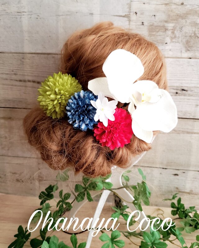 こちらの商品はhirahira 胡蝶蘭とマムの髪飾り5点Setです。