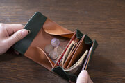 お札も持ち変えずに収納でき、利き手問わずの二つ折り財布。