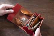 お札も持ち変えずに収納でき、利き手問わずの二つ折り財布。