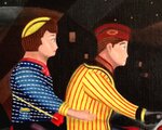 子供の頃、自分が眠った後オモチャ達が起きだして、それぞれ好き勝手に動き回っている・・・、そんな事を夢想した事はありませんか?この作品はブリキのおもちゃの恋人同士が夜な夜なオモチャ箱を抜けだして、夜の街をクルーズしている・・そんなイメージで描いてみました。