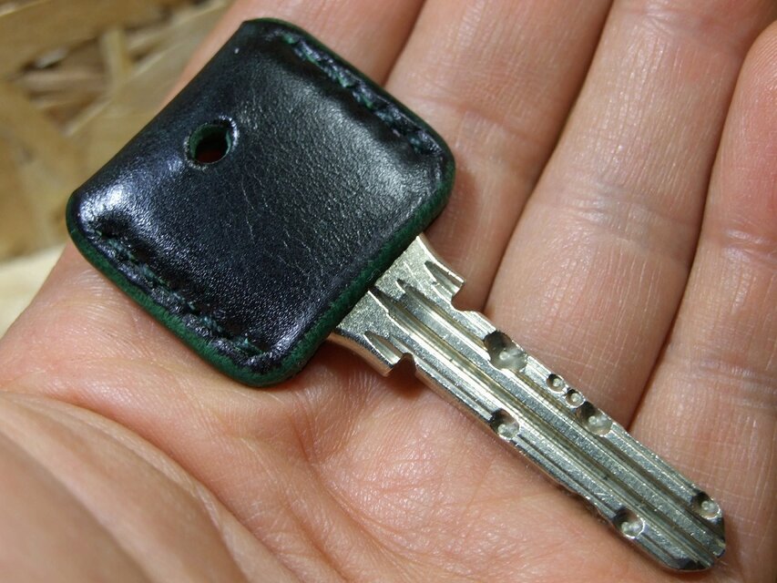 ルガトショルダーのグリーンで作ったキーカバーです。