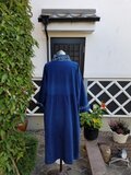 やや地厚の藍地の木綿と型染めをリメイクしてワンピース作りました。