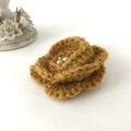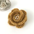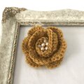 #ブローチ #毛糸編み #かぎ針編み #フラワーモチーフ #マスタード #毛糸 #ふわふわ #軽い #キラキラ #パール #フェルト #プチギフト #お花 #大人かわいい #誕生日 #イエロー #ビーズ #黄色 #クラシカル #秋 #冬 #ウール