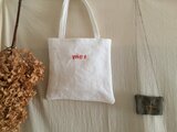 melの赤い刺繍入りのバッグです。