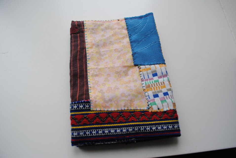 生地をちくちくつなげ、世界に1つの手帳、本カバーを作りました。