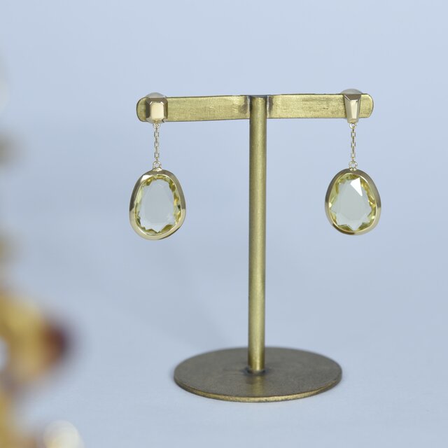 【実店舗にて販売済み】ジェムデザインピアスxダブルファセットカットのレモンクォーツ k18YGピアス