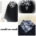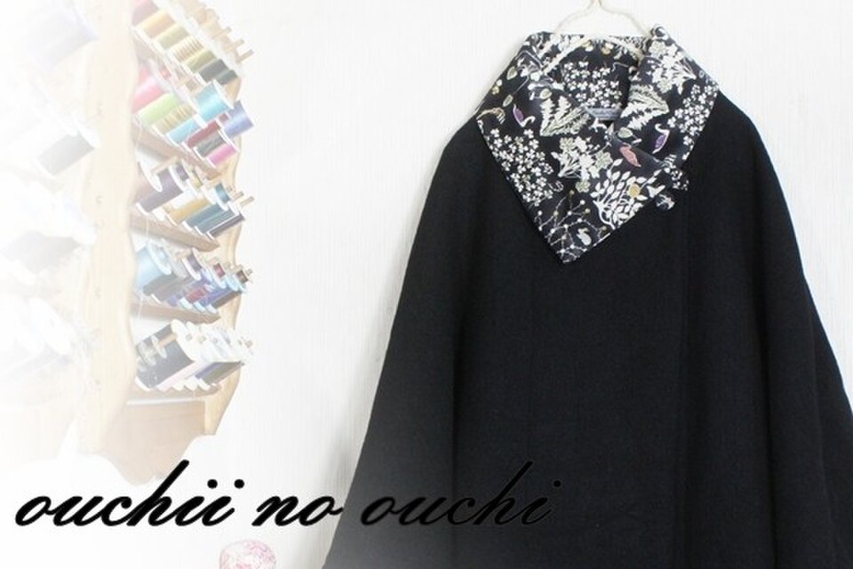 ブラック中地のウール100とホビーラホビーレ完売品LIBERTYリバティプリント・コーデュロイ<Yoshie>(ヨシエ)ブラック系で大き目カラーのポンチョをお作りしました。