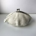ころんとしたトライアングルビーズをアイボリーのレース糸で編みこんだがま口です。