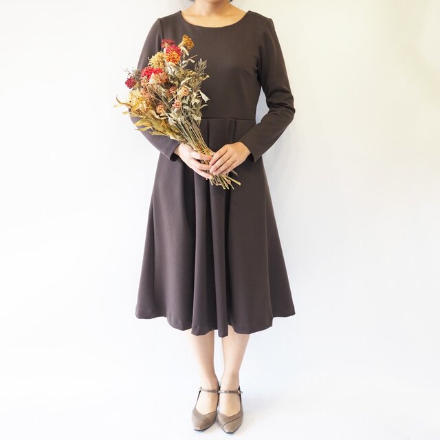 ┗ポケットやファスナー、ボタンなど余計な装飾を一切はぶき、シンプルを極めたワンピースです。その分小物やアクセサリー、着る人を引き立てます。