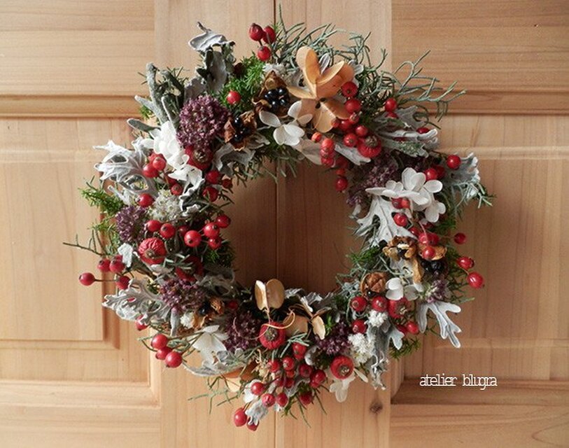 しっとりした大人色のリースで、とても素敵です。 毎回、素敵な作品をありがとうございます。