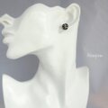 18p086・白いかすみ草の丸い1粒ピアス☆ネイビー ホムポム