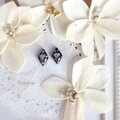 18p087・白いかすみ草のひし形1粒ピアス☆ネイビー ホムポム