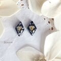 #ひし形 #ダイヤ #紺 #ネイビー #白 #ホワイト #かすみ草ピアス #かすみ草 #ドライフラワー #ボタニカル #シンプル #ピアス #イヤリング #ノンアレルギー #アレルギーフリー #スタッドピアス #1粒ピアス #可憐 #大人可愛い #小さめ #仕事用 #レジン #ハンドメイド #ホムポム