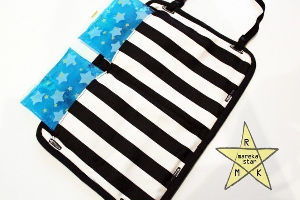 ※写真に使用した保冷剤はアカチャンホンポで購入した物です。約11㎝×約16㎝以内の保冷剤をご使用ください。